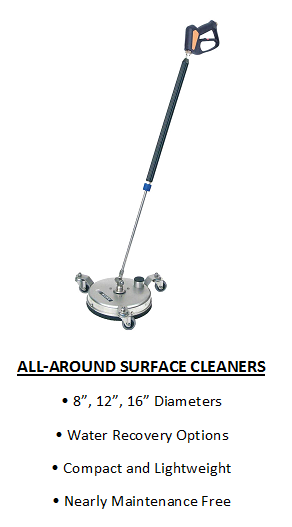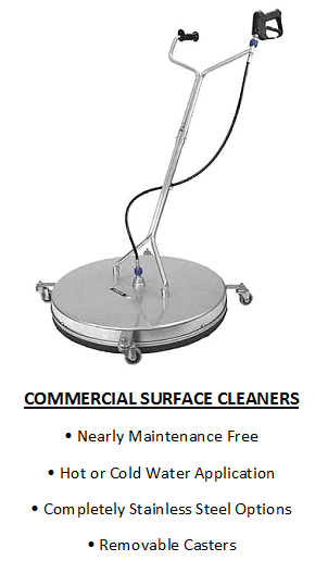 It gets tiring having to hold something all day, even if that something is as light as a carbon fiber pressure lance. Most surface and undercarriage cleaners have casters to help guide the machine uniformly across the surface; reducing energy expenditure and ensuring consistent application.