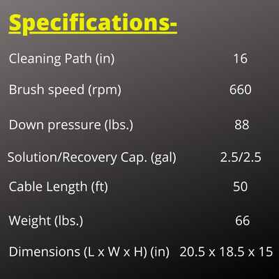 - Two counter-rotating brushes with variable pressure, up to 88 lbs.