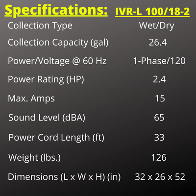 For the collection of oil and coolant mixed with metal chips, Kärcher has the answer. The IVR-L 100/18-2 offers superior collection and separation of these chips from the liquid, and offers the operator the ability to pump the collected oil and coolant back out to be disposed or recycled. An automatic shut-off prevents overfill. The IVR-L 100 has an optional chip basket, as well as oil resistant hoses and accessories.